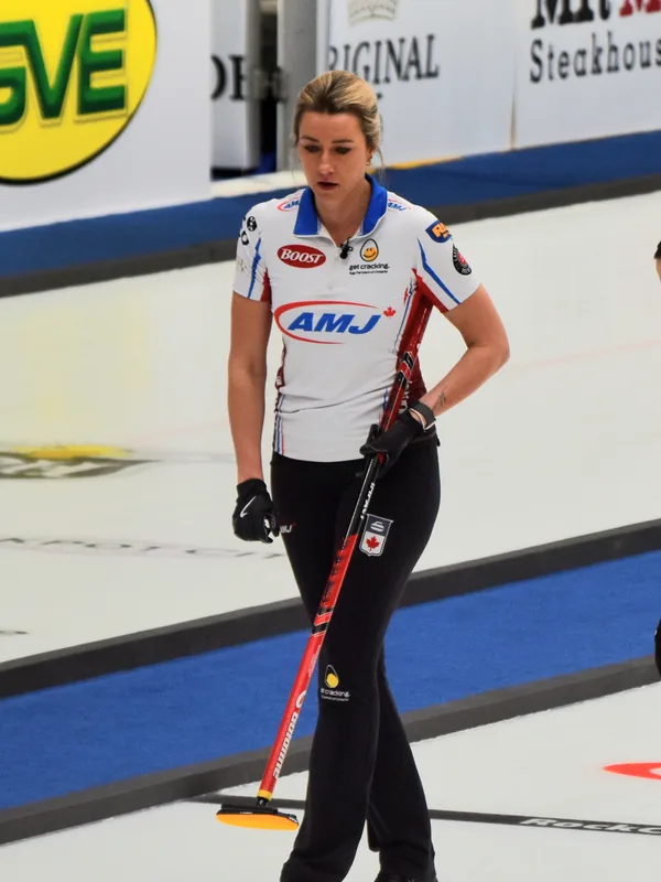 She is left-handed but delivers curling stones with her right hand.