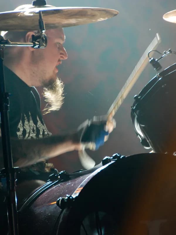 Mika Karppinen, known universally as Gas Lipstick, brought a hard-hitting, punk-infused energy to the Finnish rock scene. Before joining HIM in 1999, he cut his teeth in the aggressive worlds of deathgrind and punk, a background that informed his powerful, no-frills style. His arrival coincided with HIM's international breakthrough; his drums anchored hits like 'Join Me' and 'Buried Alive by Love,' providing the sturdy foundation for the band's melancholic melodies. For over fifteen years, his iconic look and relentless playing were central to HIM's identity, helping to define the 'love metal' genre. Beyond his main gig, he maintained ties to his roots, playing in side projects like To Separate the Flesh from the Bones. Lipstick's departure from HIM in 2015 marked the end of an era, but his work remains etched into the sound of a band that conquered European charts and cultivated a dedicated global following.