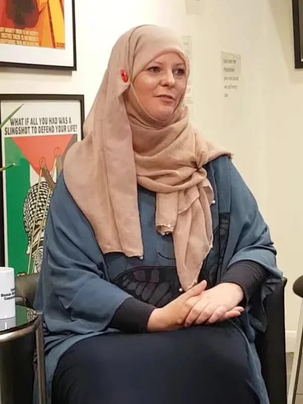 A British journalist who swapped London's press circles for advocacy, using her voice to challenge Western narratives on Palestine.