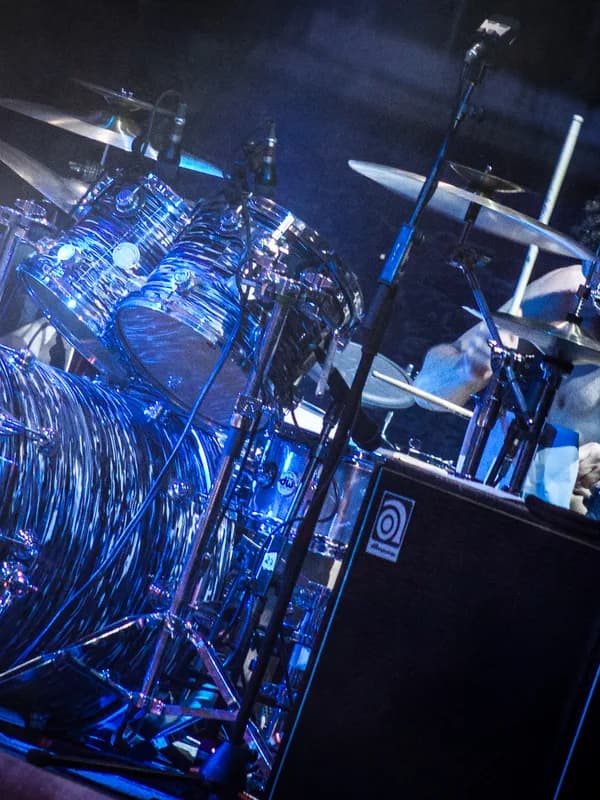 He is known for using a large drum kit with an extensive array of tom-toms and percussion instruments.